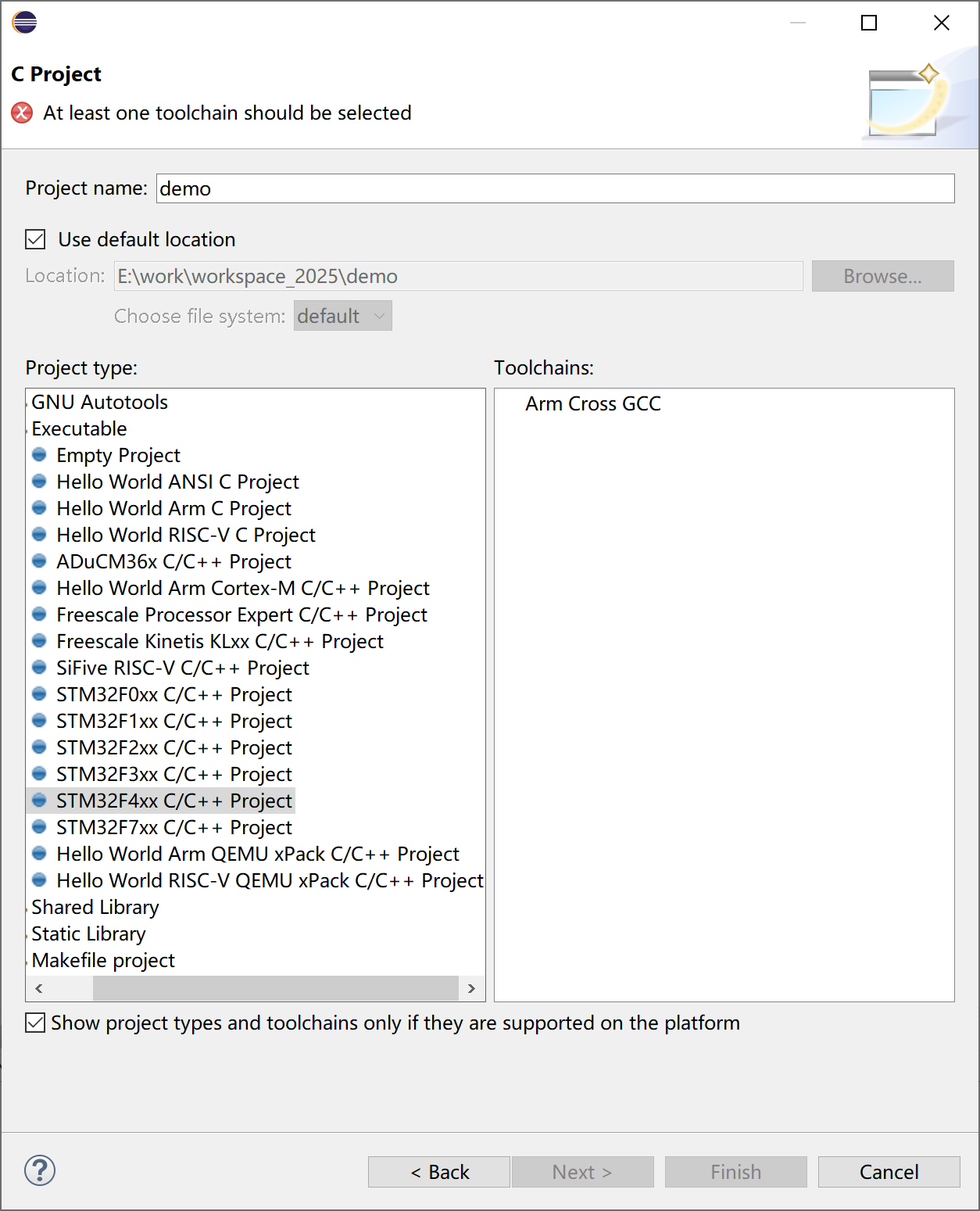 工程类型按需选择,例如STM32F4xx C/C++ Project。