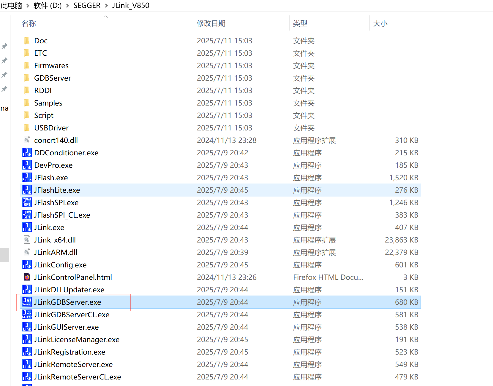 进入J-Link的安装目录,双击JLinkGDBServer.exe,如图所示。