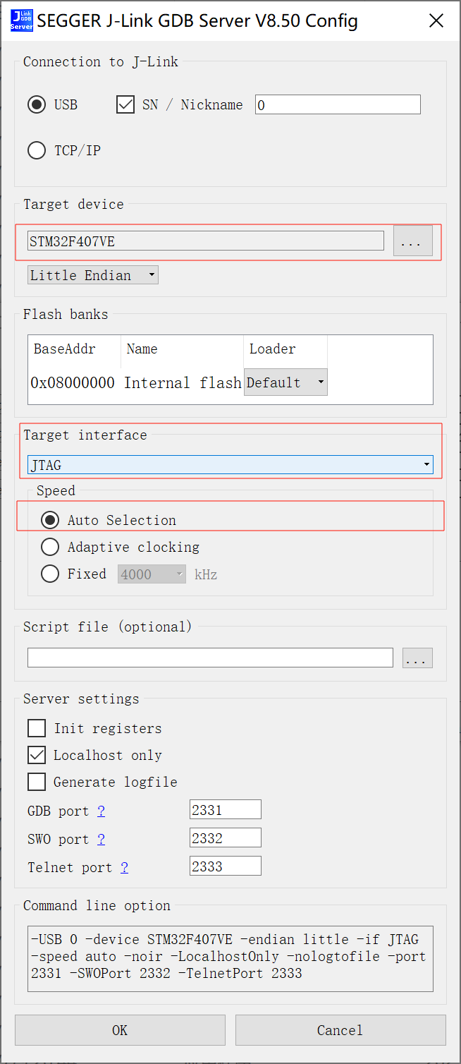 Actual executable为J-Link的安装目录,如果有多个J-Link驱动,需要手动指定目录。