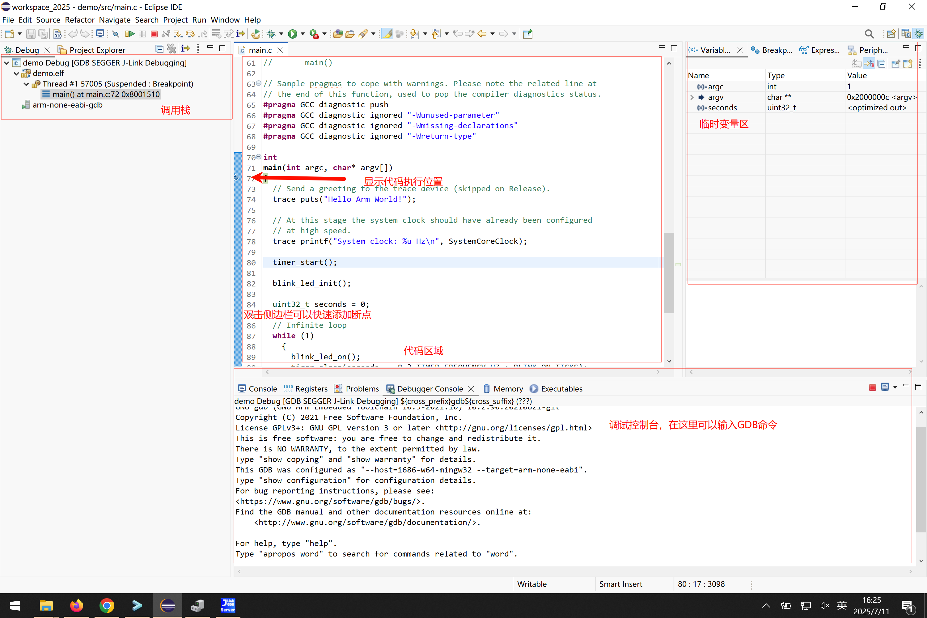 回到eclipse工程,选择demo Debug,点击Debug启动调试。