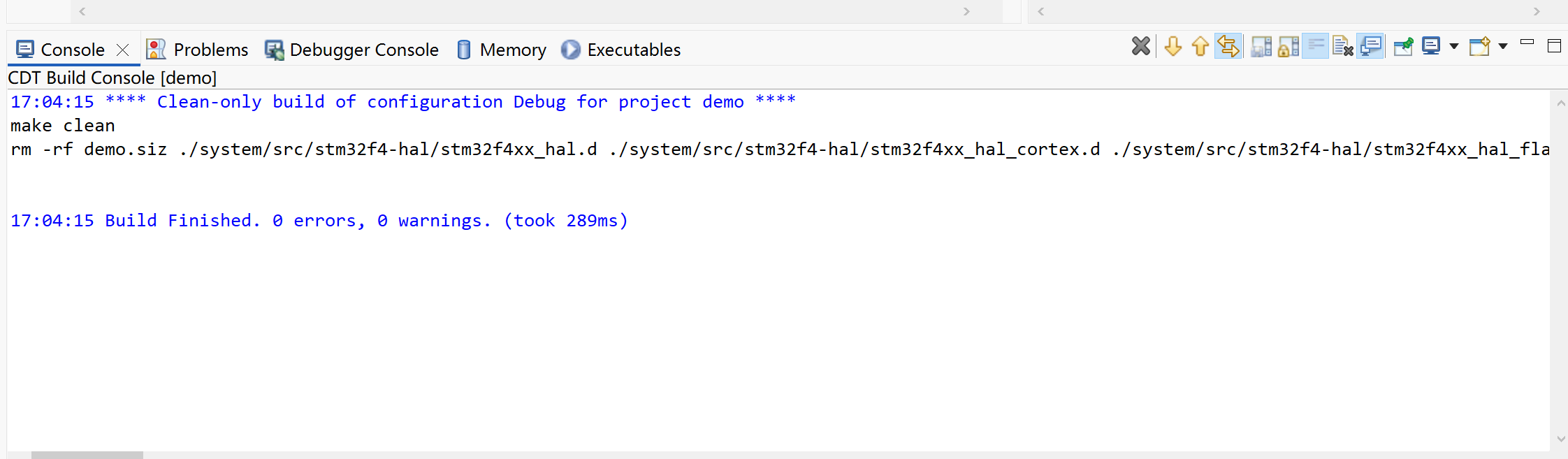 单击工程名(例如demo),右键选择Clean Project,可以清除所有编译产生的文件。